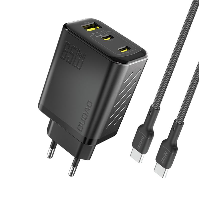 Dudao A29C 65W GaN Wall Charger - 3-portowa szybka ładowarka (2 × USB-C + USB-A) z kablem USB-C na USB-C o długości 1 m, obsługą PD i QC