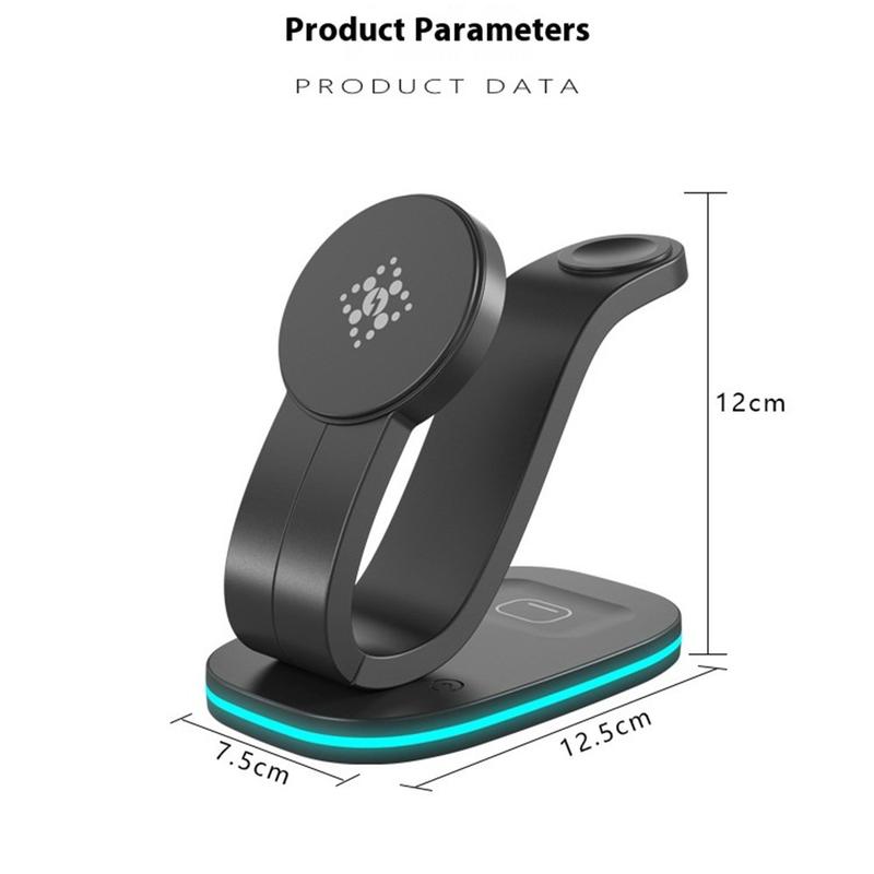 - Dedykowana stacja dokująca do zegarka o mocy 2 W i płytka do słuchawek o mocy 3 W umożliwiają jednoczesne zasilanie trzech urządzeń.