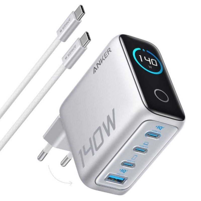 Moc klasy desktopowej w urządzeniu wielkości dłoni. Zbudowana z tranzystorów GaN trzeciej generacji, ładowarka Anker Zolo 140W wysyła do 140 watów przez trzy porty USB-C Power Delivery/PPS i jeden port USB-A Quick-Charge - wystarczająco dużo, aby ożywić 16-calowy laptop, telefon, tablet i słuchawki douszne jednocześnie. Dotykowy wyświetlacz pokazuje w czasie rzeczywistym moc, stan portu i temperaturę ładowarki, a składane bolce i antypoślizgowa podstawa zapewniają stabilność adaptera w każdym gniazdku w domu lub za granicą. Ośmiokrotna ochrona chroni podłączone urządzenia przed wysoką temperaturą, przepięciami i zwarciami, dzięki czemu jest to pojedyncza ładowarka, której można zaufać we wszystkim, od iPhone'a 15 Pro Max po drona DJI.