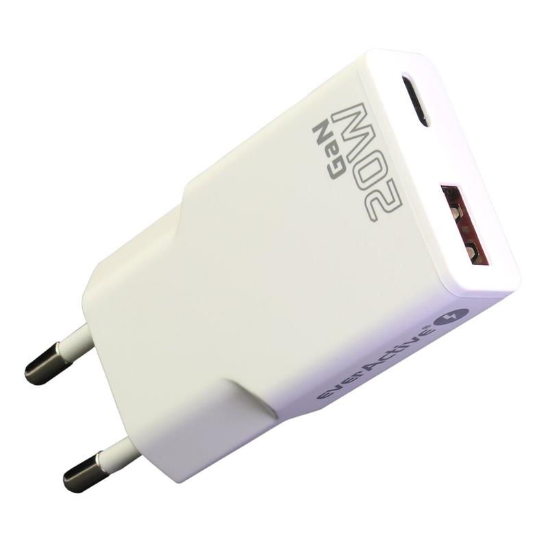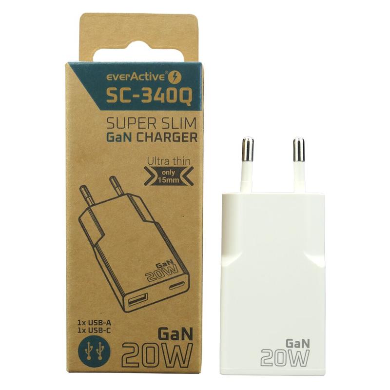Ładowarka sieciowa everActive SC-340Q GaN Super Slim 20W z portami USB QC3.0 i USB-C PD