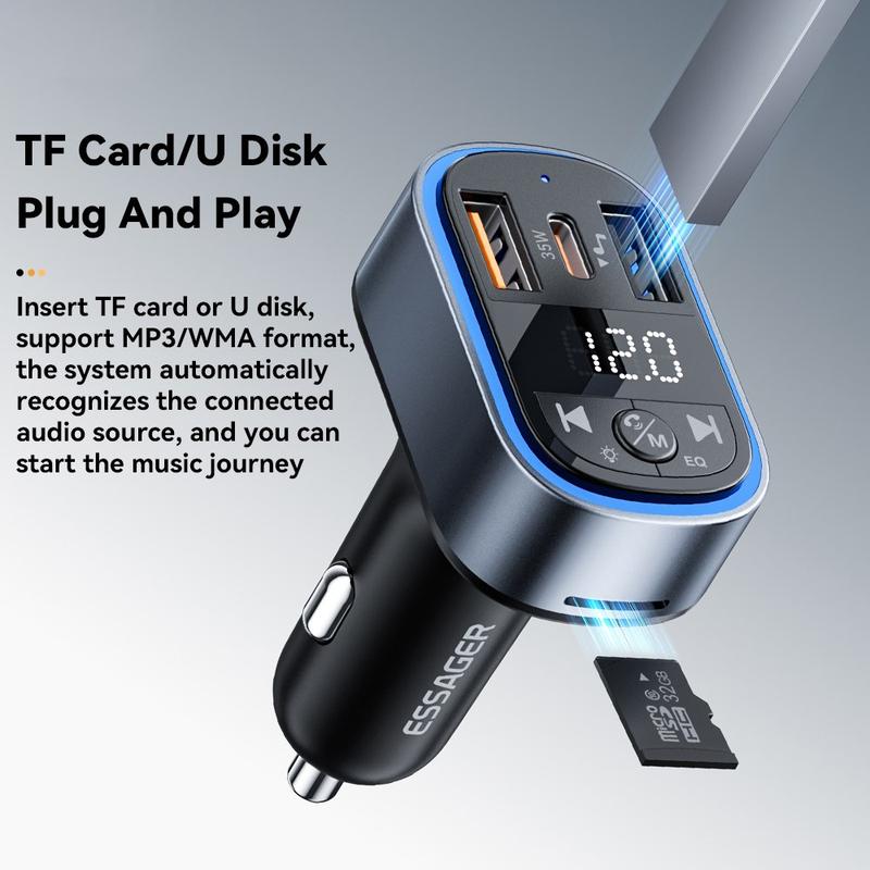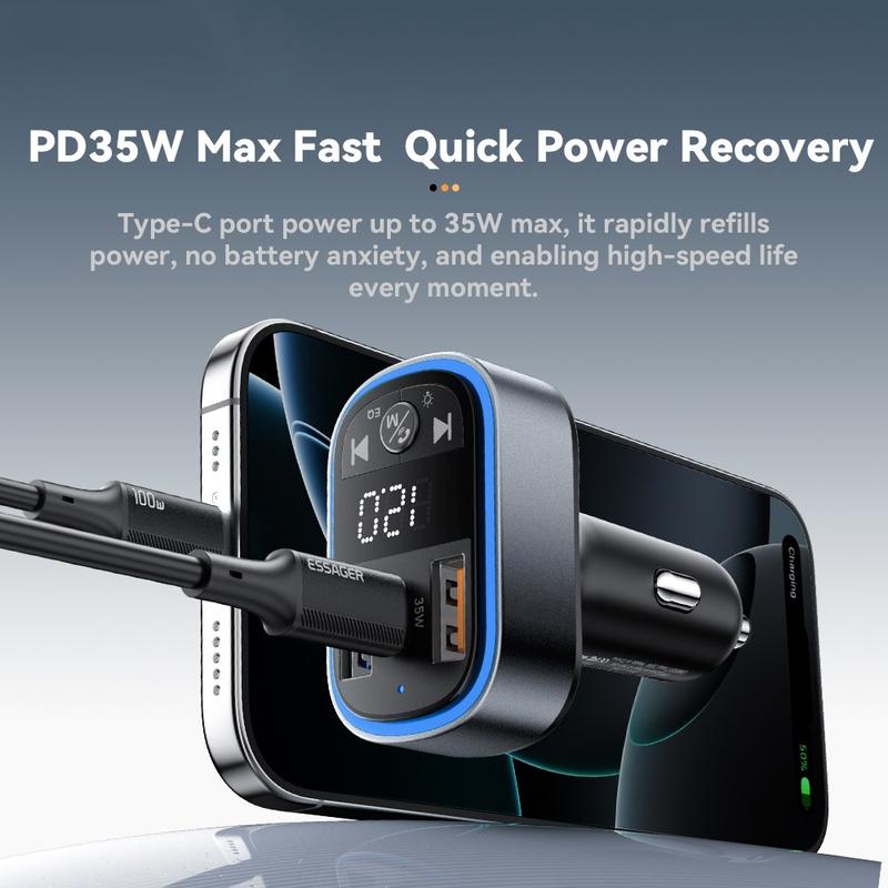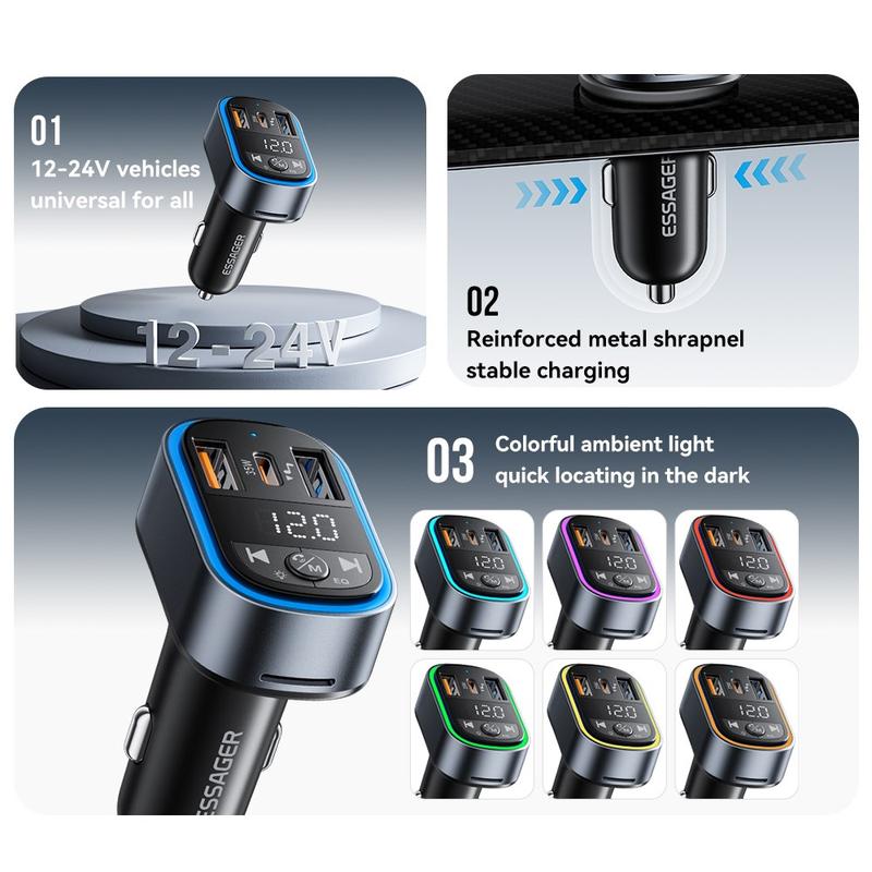ESSAGER ECCFM-CT0G-P łączy szybkie ładowanie, bezprzewodowe przesyłanie strumieniowe Bluetooth 5.3, transmiter FM, zestaw głośnomówiący HD i obsługę odtwarzania multimediów - wszystko w jednym kompaktowym, stylowym akcesorium samochodowym. Doskonała aktualizacja zapewniająca bezpieczniejszą jazdę i lepszą rozrywkę w samochodzie.