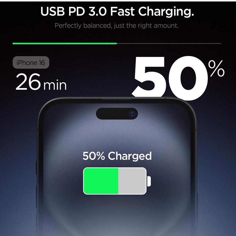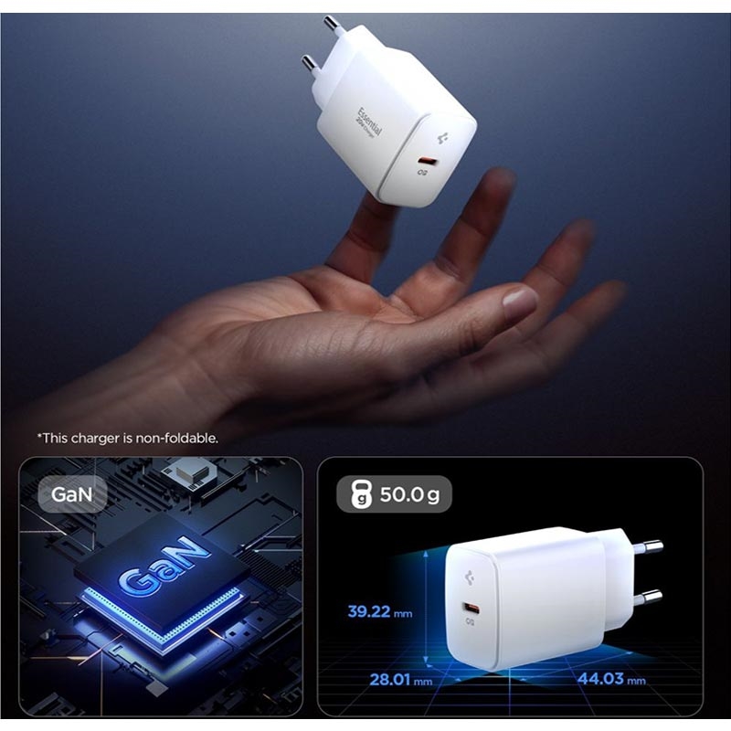 Ładowarka Spigen EE201EU Essential Charger oferuje szybkie ładowanie 20W dla smartfonów i innych urządzeń USB-C. Kompaktowa i przenośna ładowarka została zaprojektowana z myślą o wydajności, zapewniając szybkie zasilanie w domu lub w podróży. Dzięki wbudowanym funkcjom bezpieczeństwa chroni urządzenia przed przeładowaniem, przegrzaniem i zwarciem, dzięki czemu jest niezawodnym i wydajnym rozwiązaniem do ładowania.
