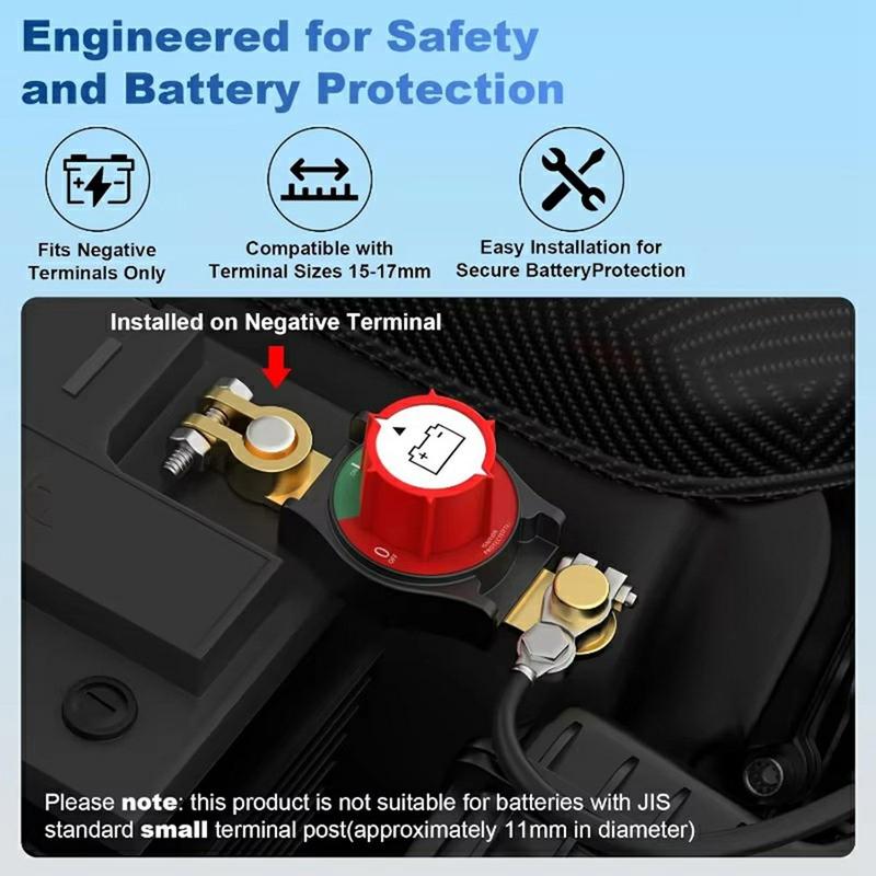 Używaj go w samochodzie, który stoi zaparkowany przez kilka dni, w ciężarówce, która potrzebuje niezawodnego odcięcia akumulatora podczas konserwacji, w kamperze podczas przechowywania poza sezonem lub w łodzi, aby zapobiec niepożądanemu rozładowaniu akumulatora, gdy nie jest używany. Jest również przydatny w zestawach kempingowych i innych systemach zasilanych akumulatorowo, gdzie ważne jest szybkie odcięcie zasilania.
