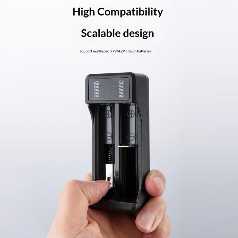 - Regulowany rozmiar gniazda kompatybilny z różnymi akumulatorami litowo-jonowymi 3,7 V / 4,2 V