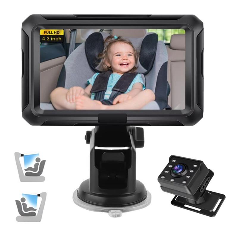 4,3-calowa niania samochodowa HD 1080P - szerokokątna kamera noktowizyjna z funkcją obrotu o 360 stopni zapewniająca bezpieczeństwo na tylnym siedzeniu