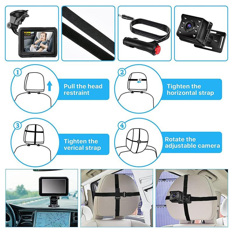 Jedź spokojnie, mając oko na swojego malucha dzięki 4,3-calowej samochodowej niani elektronicznej HD 1080P. To inteligentne akcesorium bezpieczeństwa jest wyposażone w ostrą kamerę o wysokiej rozdzielczości z możliwością obrotu o 360° i szerokim kątem widzenia 150°, co pozwala wyraźnie obserwować dziecko bez odwracania głowy. Dzięki ulepszonemu widzeniu w nocy, żywej jasności w ciągu dnia i prostej instalacji, został zaprojektowany w celu zwiększenia zarówno bezpieczeństwa, jak i wygody podczas każdej podróży.