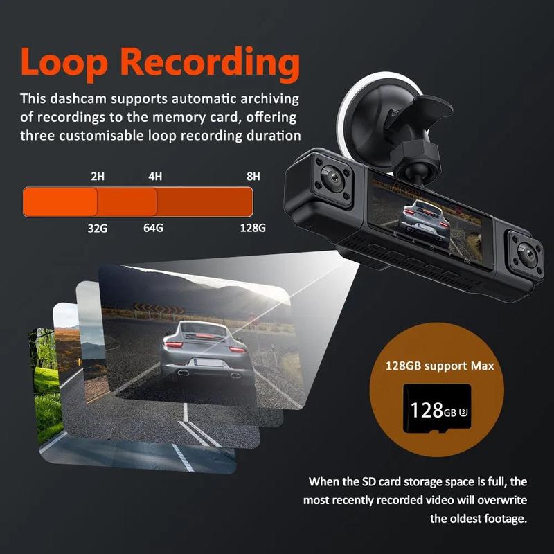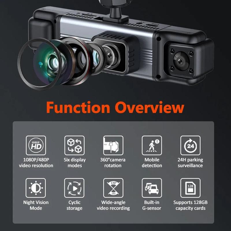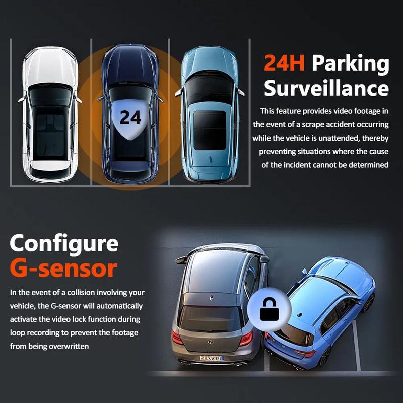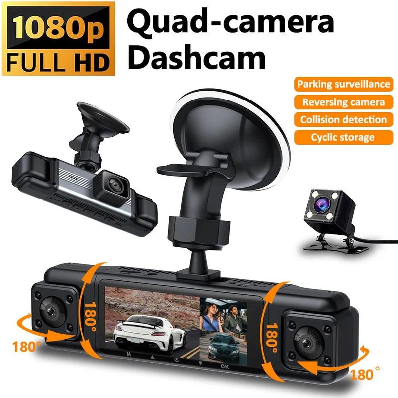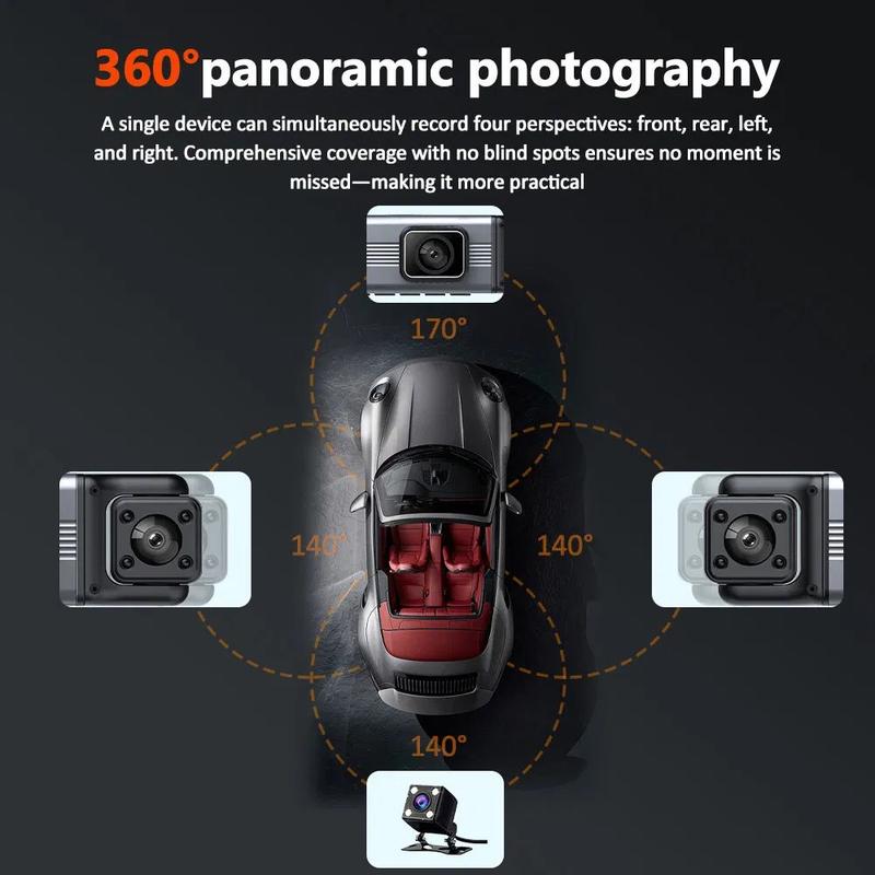 Zachowaj bezpieczeństwo i pełną ochronę na drodze dzięki tej 4-obiektywowej kamerze samochodowej z ekranem IPS o przekątnej 3.0", zaprojektowanej do rejestrowania podróży z wyjątkową wyrazistością. Wyposażona w przednią kamerę 1080P i trzy dodatkowe obiektywy boczne i tylne 480P, zapewnia pełne pokrycie dookoła, zapewniając bezpieczniejszą i pewniejszą jazdę.
