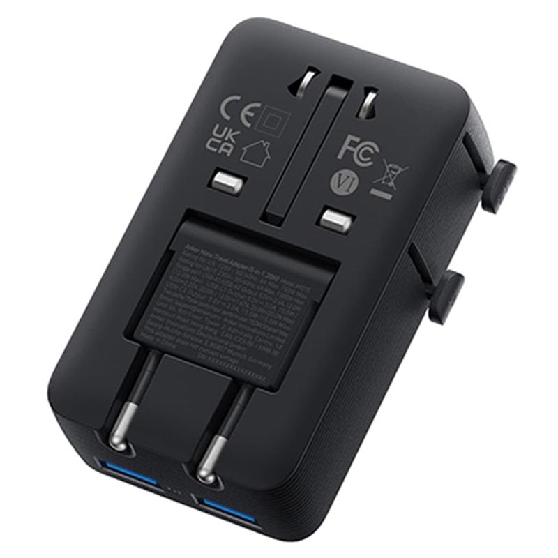 Adapter podróżny Anker Nano - 5-portowy uniwersalny zasilacz z 1 portem AC, 2 portami USB-A i 2 portami USB-C, szybkie ładowanie 20W