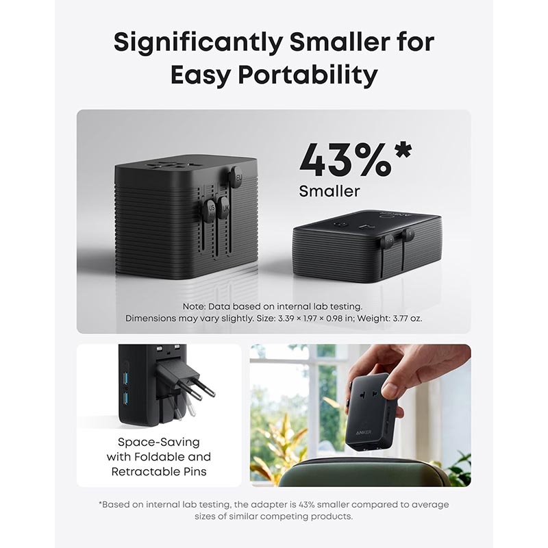 Adapter podróżny Anker Nano łączy w sobie przenośność, uniwersalną kompatybilność i ładowanie wielu urządzeń w jednej inteligentnej konstrukcji. Jego kompaktowy rozmiar oszczędza miejsce w bagażu, a szybkie ładowanie USB-C zapewnia gotowość niezbędnych urządzeń. Dzięki zaawansowanym funkcjom bezpieczeństwa i obsłudze globalnych wtyczek, jest to niezbędne akcesorium zarówno dla zwykłych, jak i częstych podróżników.