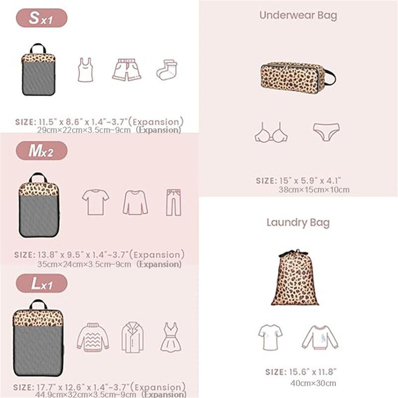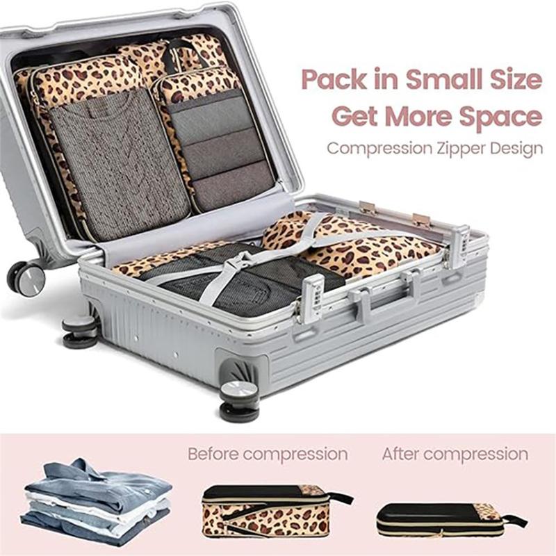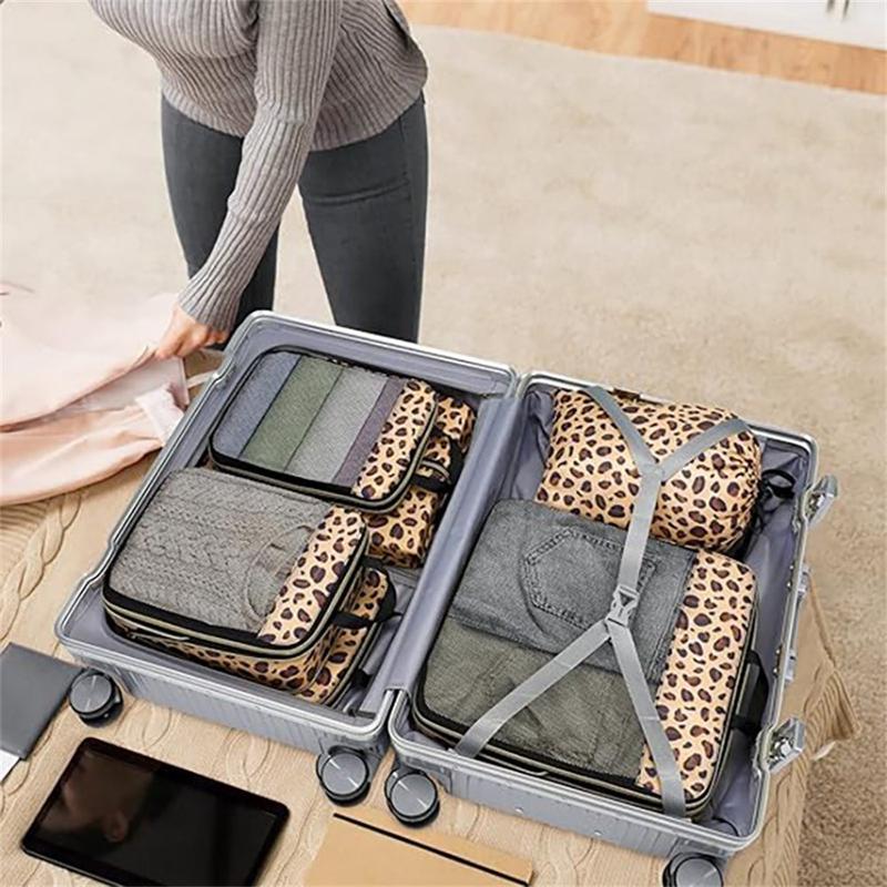 6-częściowy zestaw organizerów podróżnych w panterkę - oszczędzające miejsce torby kompresyjne na ubrania i przybory toaletowe
