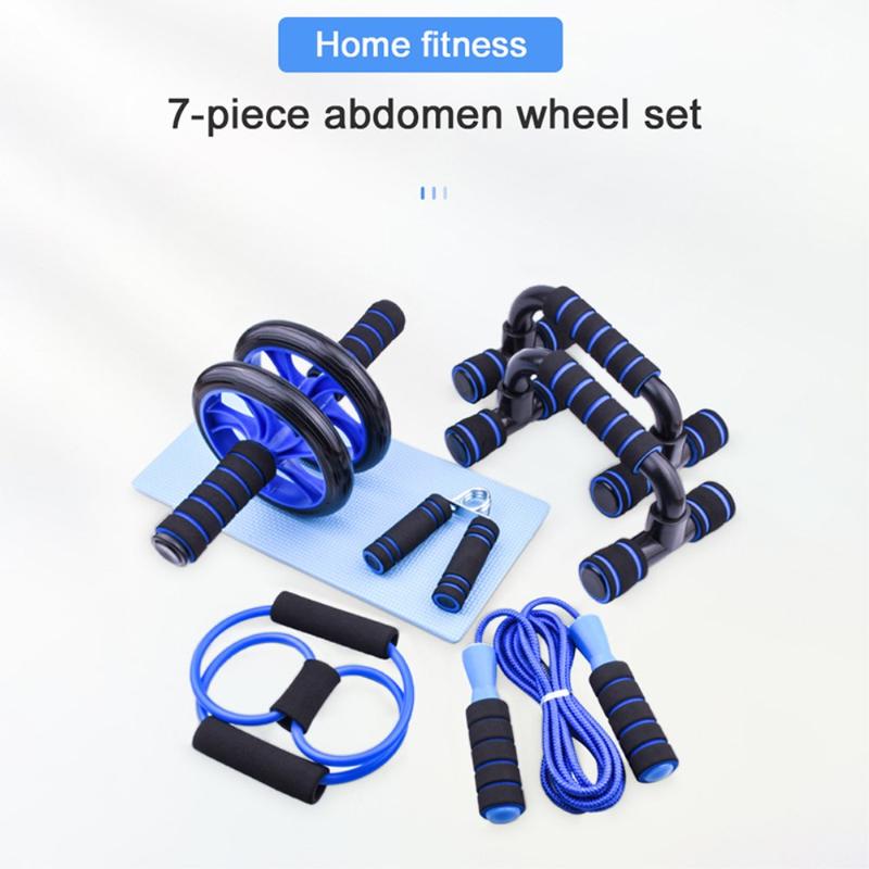 7-częściowy zestaw do domowego treningu fitness - wałek do ćwiczeń mięśni brzucha, drążki do pompek, skakanka, ściskacz do dłoni i ekspander do klatki piersiowej