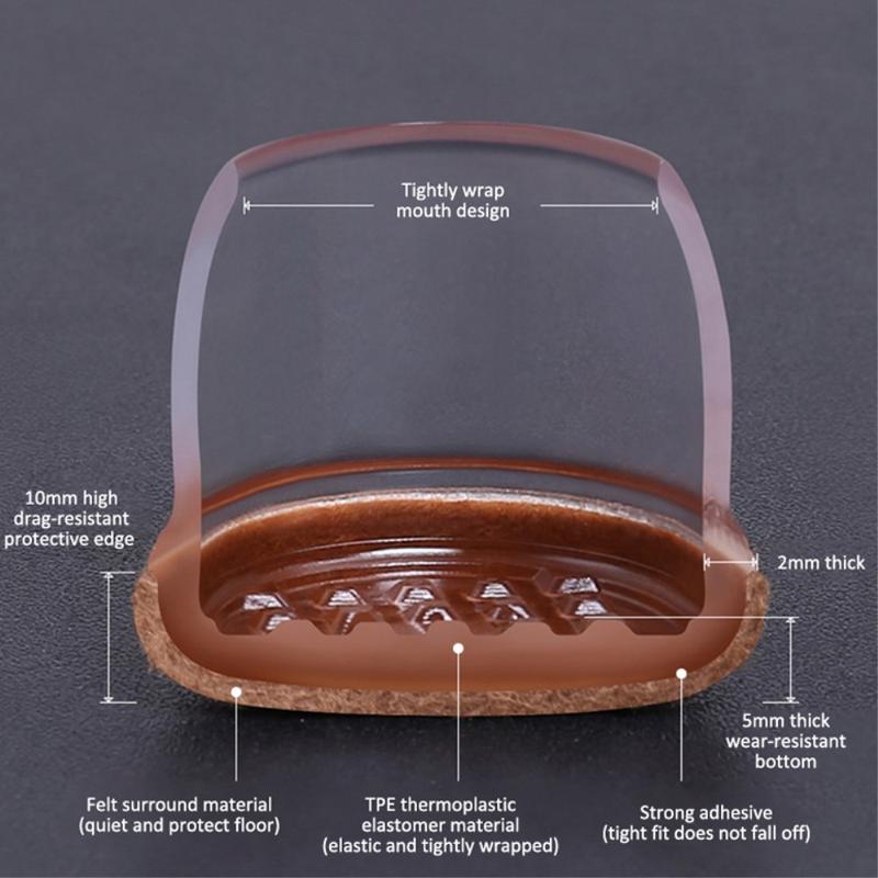 Połączenie wysokiej jakości materiału TPE i gładkiej filcowej podkładki zapewnia długotrwałą wydajność. Pokrowce łatwo się rozciągają, owijając się wokół nóg krzesła i zapewniając doskonałą amortyzację.