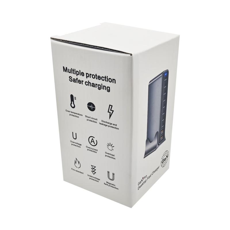 Zasilaj całe biurko za pomocą jednego kompaktowego koncentratora dzięki tej stacji ładującej GaN o mocy 800W. Zaprojektowana z myślą o wymagających konfiguracjach, łączy w sobie wiele wyjść USB-C i USB-A, dzięki czemu można jednocześnie ładować laptopy, tablety, telefony i akcesoria — bez konieczności stosowania wielu oddzielnych adapterów. Technologia GaN zapewnia wysoką wydajność przy mniejszym wydzielaniu ciepła, co czyni ją inteligentnym wyborem dla domowych biur, studiów, warsztatów naprawczych i wspólnych obszarów ładowania.
