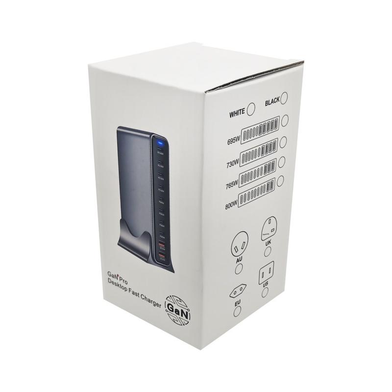 800W GaN wieloportowa ładowarka biurkowa ze stojakiem - stacja szybkiego ładowania USB-C/USB-A, inteligentna dystrybucja mocy, 110-240 V