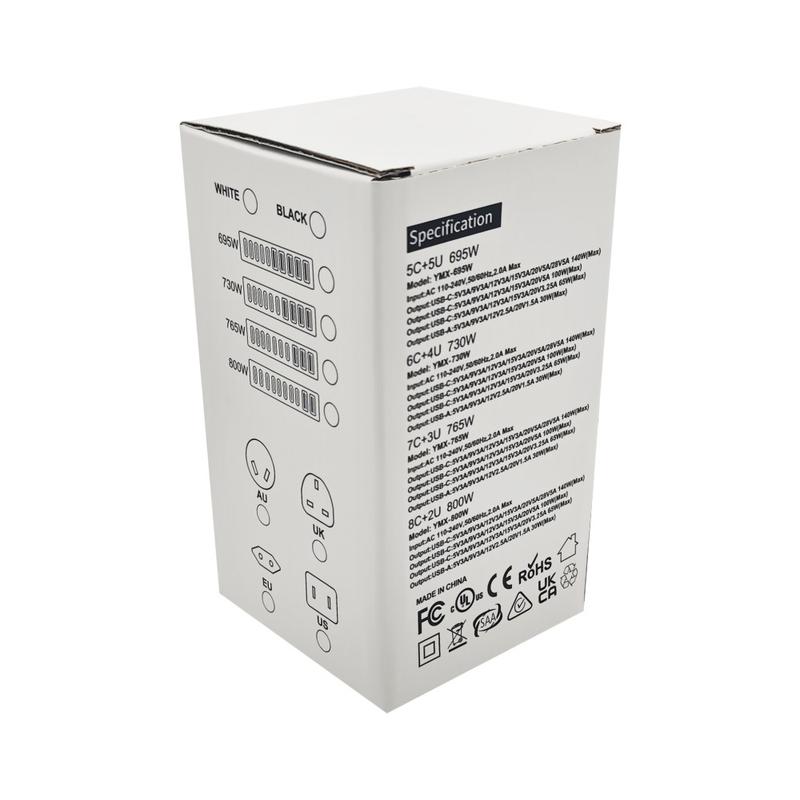 - Wysoka moc całkowita: do 800W mocy wyjściowej do ładowania wielu urządzeń (całkowita moc jest dzielona między porty)