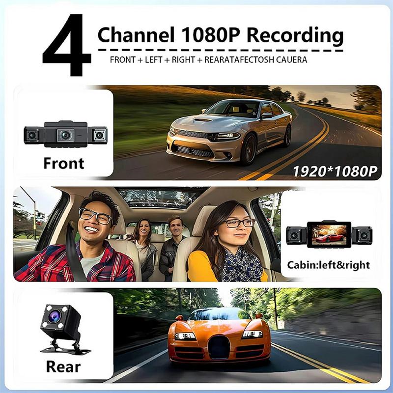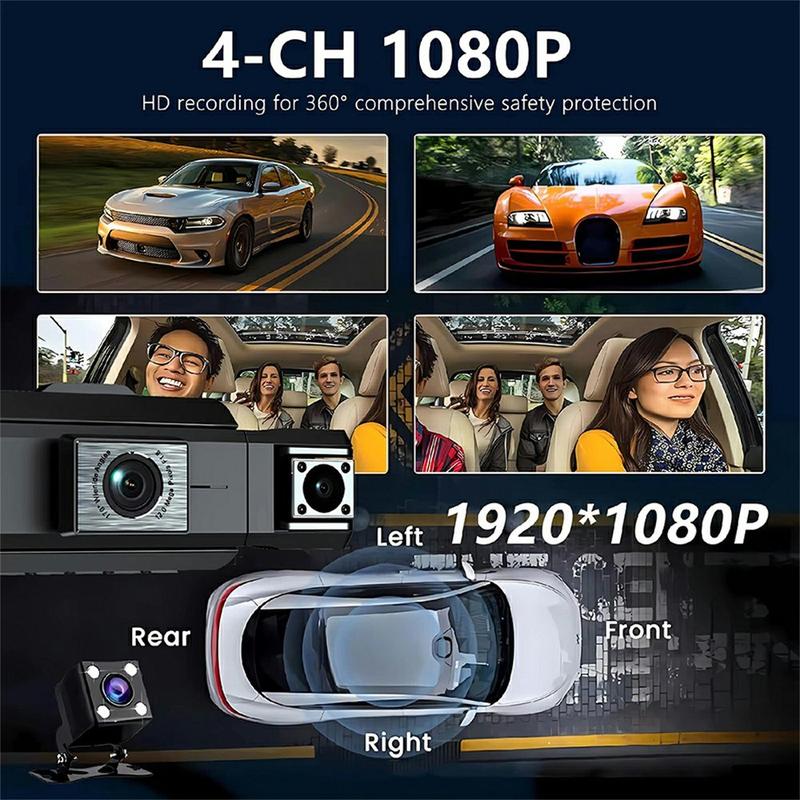 9728D 1080P WiFi Dash Cam / 4-kanałowa kamera samochodowa HD z noktowizorem i nagrywaniem w pętli