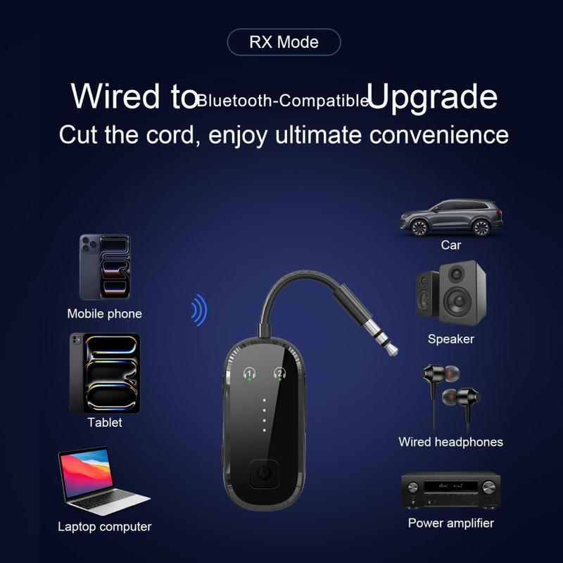 Dzięki technologii Bluetooth 5.4 urządzenie zapewnia szybszą reakcję, stabilną łączność i wydajną pracę bezprzewodową. W trybie nadajnika może przesyłać dźwięk ze źródeł przewodowych do słuchawek lub głośników Bluetooth. W trybie odbiornika może odbierać bezprzewodowy dźwięk ze smartfona, tabletu lub innego urządzenia zgodnego z Bluetooth i przesyłać go do przewodowego sprzętu audio poprzez złącze 3,5 mm. Obsługa Dual Link zapewnia jeszcze większą wygodę, umożliwiając połączenie z dwoma urządzeniami Bluetooth jednocześnie, co ułatwia wspólne słuchanie lub przełączanie między wieloma urządzeniami.