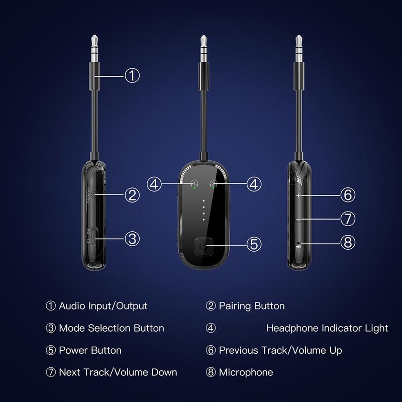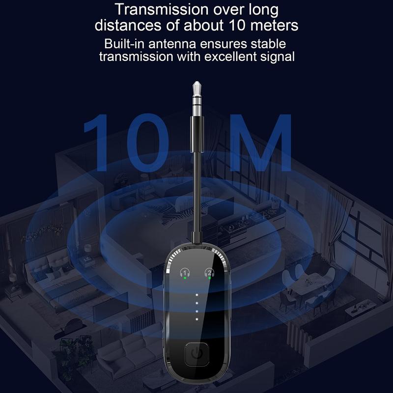 Wbudowana bateria o pojemności 250 mAh zapewnia długi czas pracy, a ładowanie typu C sprawia, że ładowanie jest proste i nowoczesne. Kompaktowy i łatwy do przenoszenia adapter audio Bluetooth 2 w 1 idealnie nadaje się do domowej rozrywki, podróży, audio w samochodzie, użytku biurowego oraz modernizacji starszego sprzętu audio bez konieczności jego wymiany.