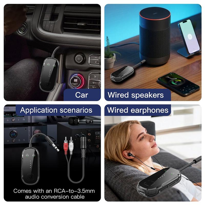 Jest to również świetna opcja dla osób, które chcą nadal korzystać ze starszych głośników, zestawów stereo, telewizorów lub samochodowych systemów audio, nie rezygnując z nowoczesnych opcji połączeń bezprzewodowych. Dzięki dobrej żywotności baterii, łatwemu ładowaniu przez złącze Type-C, automatycznemu ponownemu łączeniu i praktycznym akcesoriom w zestawie, oferuje prosty sposób na zwiększenie użyteczności przewodowych zestawów audio.