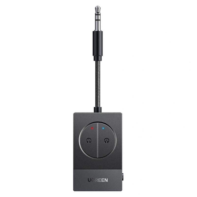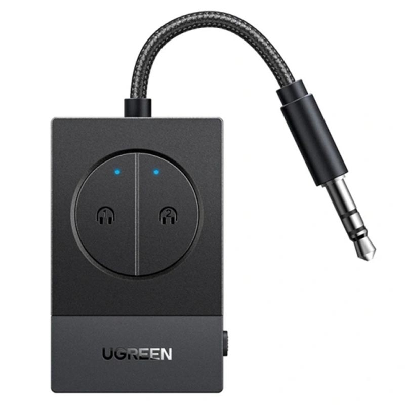 Adapter audio Ugreen BT305 Bluetooth 5.4 - podwójne gniazdo 3.5mm, ładowanie przez USB-C, bateria o żywotności 19 godzin, możliwość sparowania dwóch par słuchawek