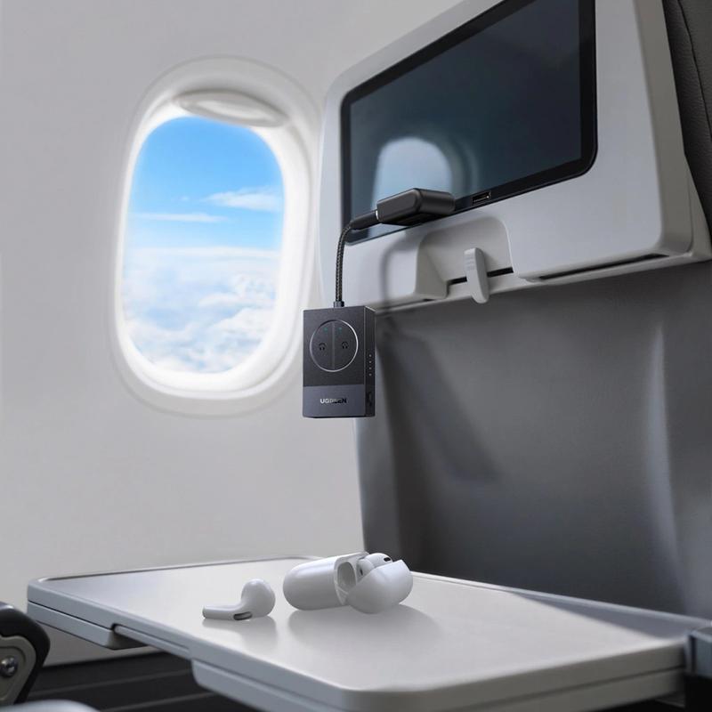 Podwójne gniazdo 3.5mm sprawia, że urządzenie jest szczególnie przydatne w samolotach i podczas wspólnego słuchania. Można sparować jednocześnie dwie pary słuchawek Bluetooth, dzięki czemu dwie osoby mogą oglądać lub słuchać razem z jednego źródła. Wbudowana bateria zapewnia do 19 godzin użytkowania, a ładowanie przez USB-C ułatwia doładowanie za pomocą nowoczesnych ładowarek. Wskaźniki LED i dedykowane przyciski ułatwiają parowanie i sprawdzanie stanu podczas podróży.