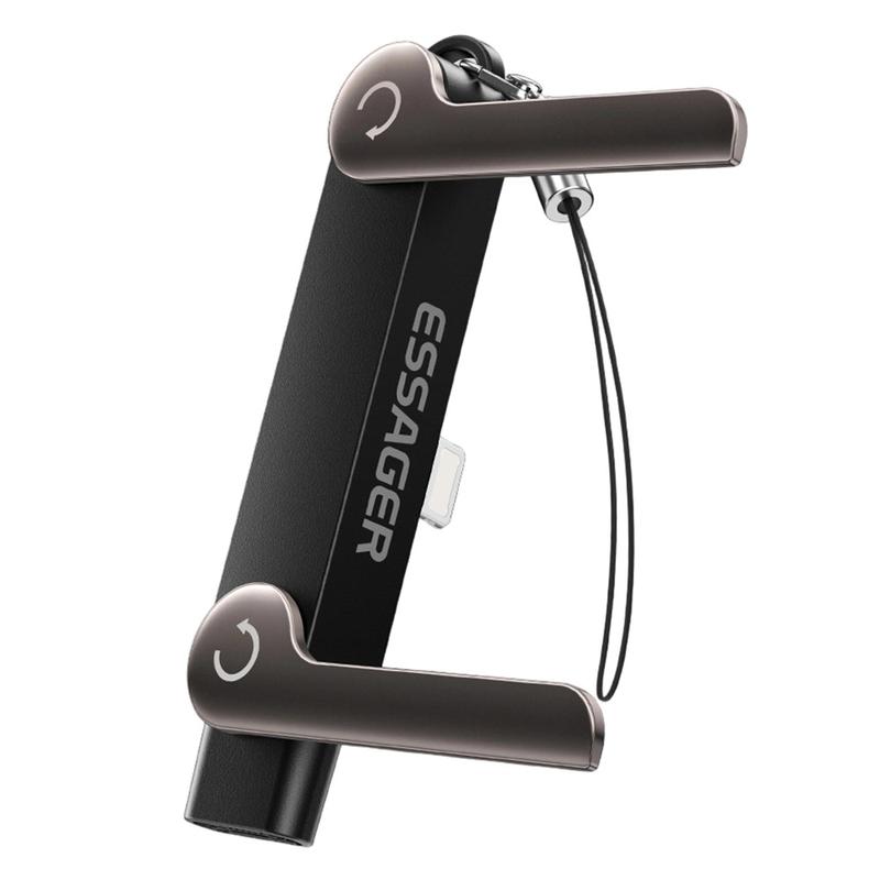 Adapter Essager w kształcie litery L z gniazdem USB-C (żeńskim) i wtykiem Lightning (męskim), ze składaną podstawką i funkcją szybkiego ładowania
