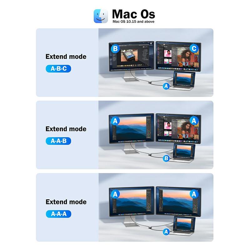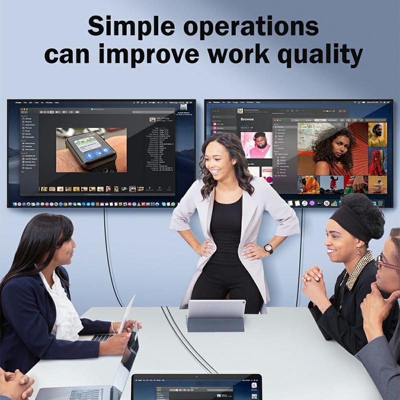 Ten adapter posiada dwa wyjścia HDMI, obsługujące rozszerzone i lustrzane tryby wyświetlania. Jeden port obsługuje rozdzielczość 4K przy 30 Hz (za pośrednictwem sterownika TUTULINK), podczas gdy drugi zapewnia rozdzielczość 1080P Full HD, umożliwiając elastyczne kombinacje wyświetlania do pracy, prezentacji lub rozrywki.