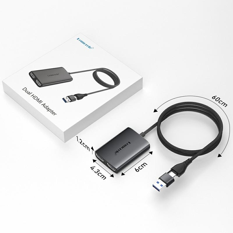 Adapter Lemorele HD10 USB/USB-C do podwójnego HDMI został zaprojektowany w celu rozszerzenia lub odzwierciedlenia ekranu laptopa lub komputera stacjonarnego na dwóch zewnętrznych ekranach. Umożliwiając konfigurację dwóch monitorów, znacznie poprawia produktywność, wielozadaniowość i wydajność przepływu pracy w zastosowaniach profesjonalnych i codziennych.
