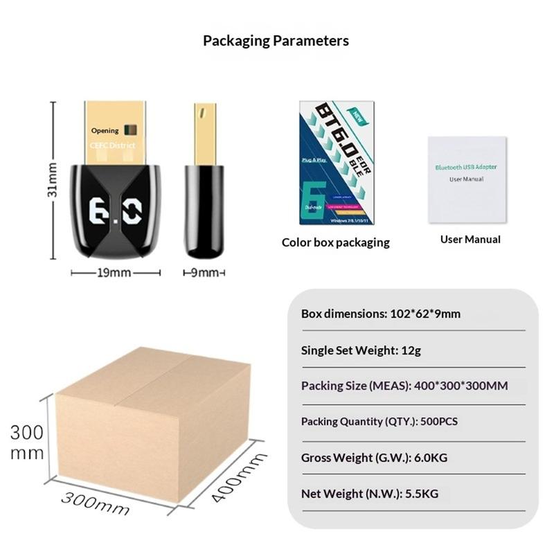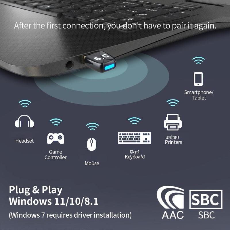 Ten adapter USB Bluetooth 6.0 zapewnia szybką i stabilną łączność bezprzewodową z komputerem. Został zaprojektowany z myślą o płynnym odtwarzaniu dźwięku, responsywnych urządzeniach wejściowych i codziennym użytkowaniu wielu urządzeń. Wystarczy go podłączyć, aby cieszyć się niezawodną łącznością bezprzewodową bez skomplikowanej konfiguracji.