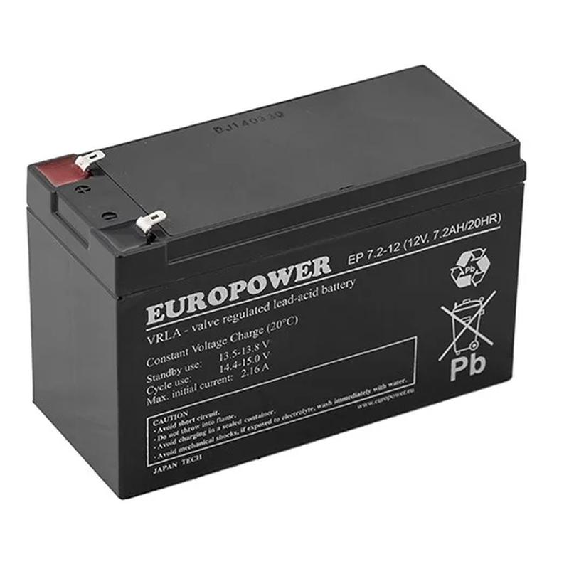 Akumulator szczelny typu AGM VRLA Europower EP 7.2-12 z zaciskami T2 – 12 V, 7,2 Ah