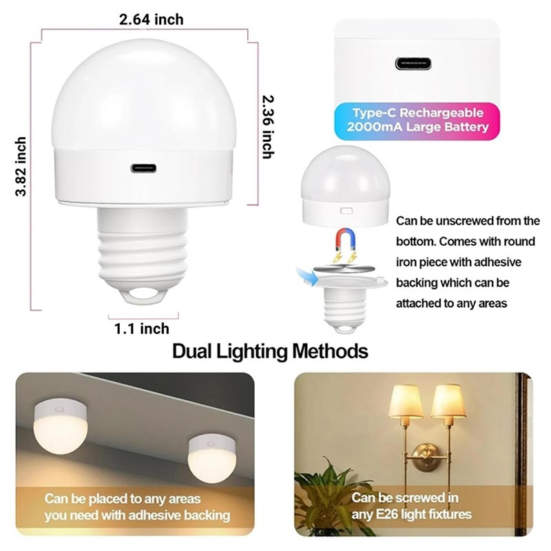 Rozświetl swoją przestrzeń dzięki wszechstronnym żarówkom E27 z możliwością ładowania. Wyposażone we wbudowaną baterię o dużej pojemności 1800 mAh, żarówki te są idealne do obszarów bez okablowania lub gniazdek elektrycznych. Magnetyczna podstawa umożliwia łatwe ładowanie, a pilot zdalnego sterowania zapewnia wygodę w regulacji jasności, ciepła i koloru. Idealne do użytku wewnątrz i na zewnątrz, żarówki te zapewniają do 15 godzin ciągłego światła.