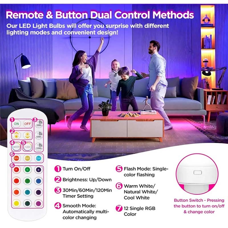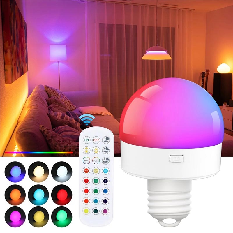 Akumulatorowa żarówka z funkcją RGB i pilotem - E27 - 2 szt.
