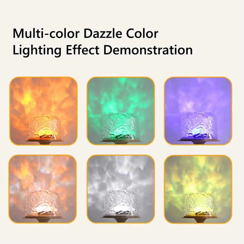 - Podwójny tryb 2 w 1 - używaj go jako miękkiej, ciepłej lampki nocnej lub zdejmij klosz, aby przekształcić go w oszałamiający projektor fal, który wypełnia przestrzeń żywymi odbiciami kolorów.