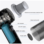 Bezprzewodowy odkurzacz samochodowy 6000Pa to potężne, przenośne narzędzie czyszczące zaprojektowane do utrzymania samochodu, domu i biura w nieskazitelnej czystości. Dzięki wysokowydajnemu ssaniu 120 W i ciśnieniu 6000 Pa skutecznie usuwa kurz, okruchy, sierść zwierząt, sadzę, a nawet niewielkie plamy z wody. Dołączone wielofunkcyjne głowice szczotkowe docierają do ciasnych szczelin, siedzeń samochodowych, dywaników podłogowych i bagażników, zapewniając dokładne czyszczenie. Lekki i bezprzewodowy, zapewnia do 30 minut ciągłej pracy na pełnym naładowaniu, zasilany akumulatorem 2000 mAh. Duży pojemnik na kurz o pojemności 0,5 l oznacza rzadsze opróżnianie, a ładowanie przez USB zapewnia wygodne zasilanie z adapterów, powerbanków lub ładowarek samochodowych.