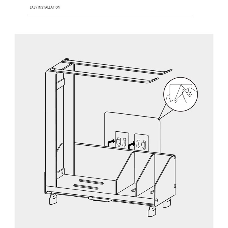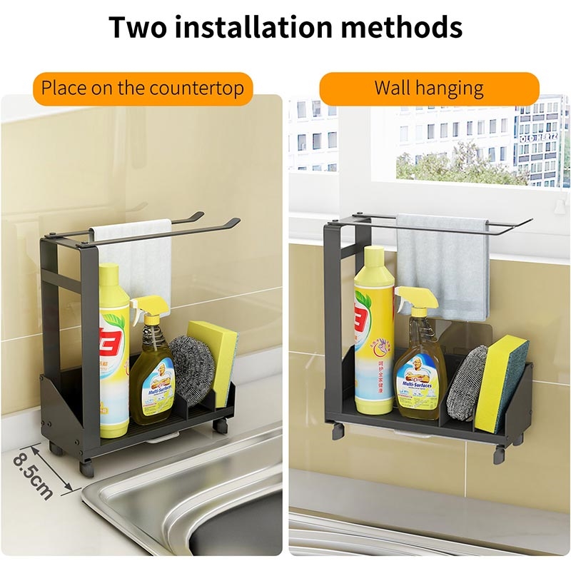 Wykonany z wytrzymałego aluminium i stali węglowej organizer zapewnia długotrwałą stabilność i odporność na codzienne zużycie. Nie wymaga instalacji - wystarczy umieścić go na blacie lub zawiesić w razie potrzeby. Jego kompaktowa konstrukcja pasuje do większości zlewozmywaków, dzięki czemu idealnie nadaje się do kuchni, zlewozmywaków i kompaktowych pomieszczeń mieszkalnych.