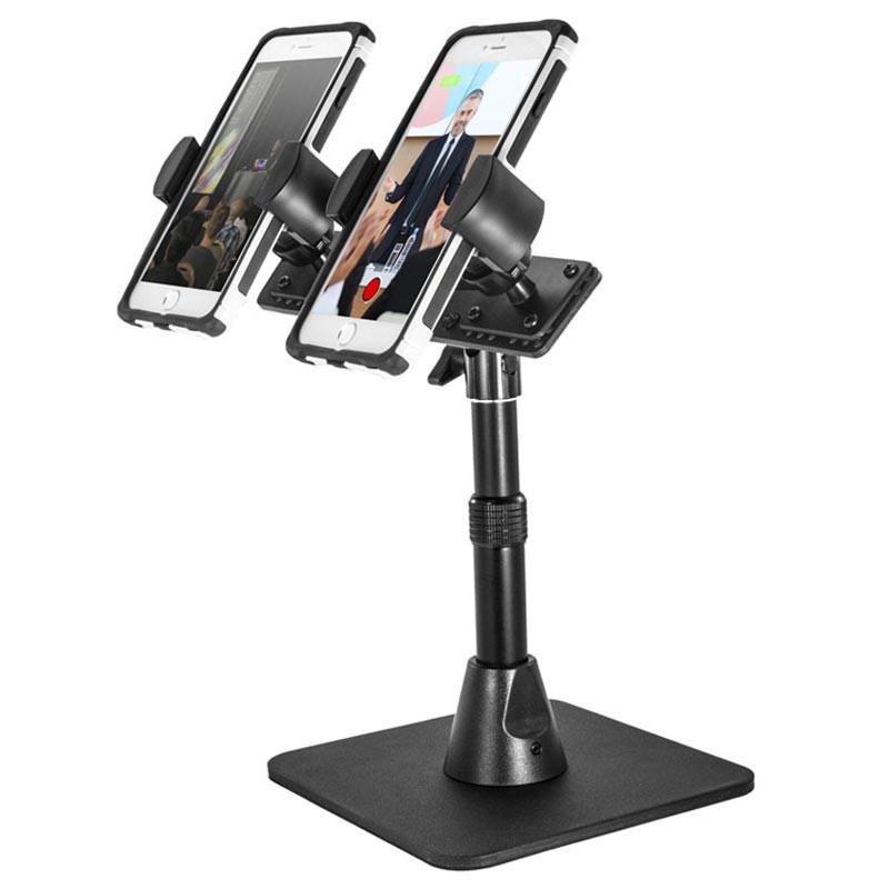 Umieśc do 2 smartfonów w zasięgu ręki dzięki uchwytowi na biurko Arkon TW Broadcaster Pro TWBHD8RV2.