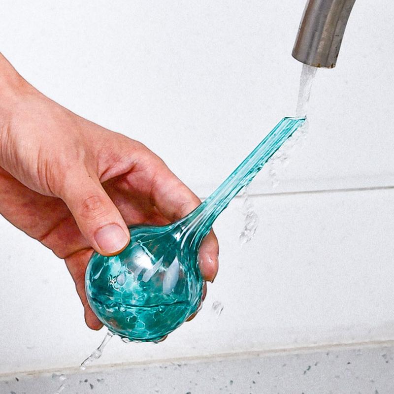 Każda kula do podlewania jest wykonana ręcznie ze szkła, łącząc praktyczną pielęgnację roślin z elegancką dekoracją. Kolorowe wykończenie dodaje żywego akcentu doniczkom, donicom i pojemnikom ogrodowym, jednocześnie naturalnie wtapiając się w każde otoczenie domowe lub zewnętrzne.