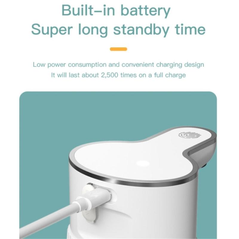 Wyposażony w akumulator o pojemności 500 mAh, dozownik działa przez wiele miesięcy na jednym ładowaniu. Łatwe ładowanie za pomocą dołączonego kabla USB.