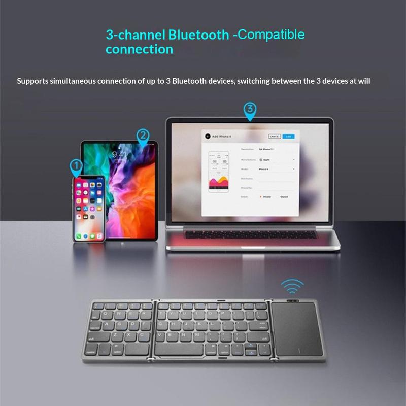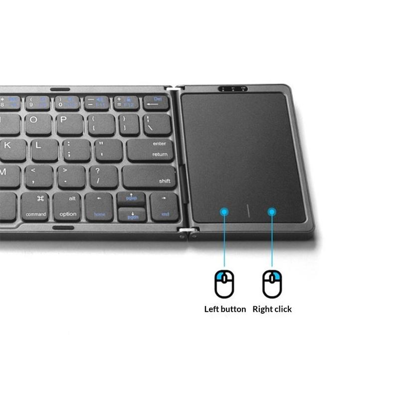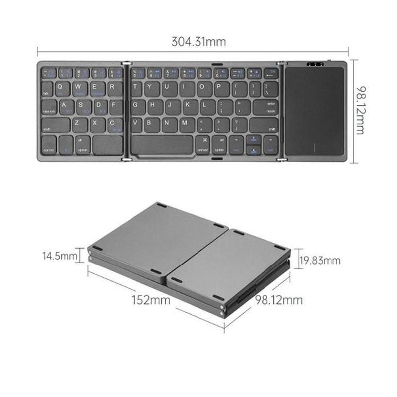 B089 Składana klawiatura bezprzewodowa z panelem dotykowym (81 klawiszy) - układ QWERTY, kompatybilna z wieloma urządzeniami przez Bluetooth, ładowana przez USB-C, ciche klawisze