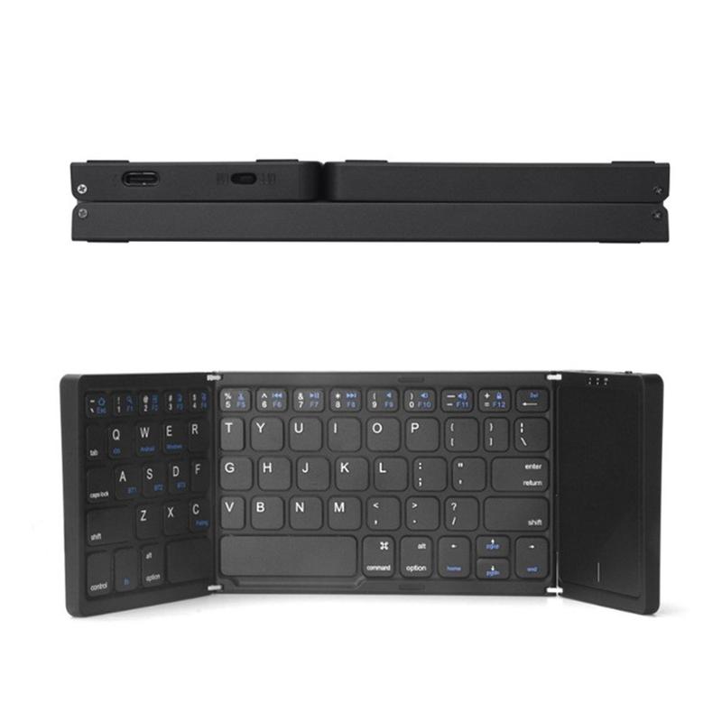 B089 Składana klawiatura bezprzewodowa z panelem dotykowym (81 klawiszy) - układ QWERTY, kompatybilna z wieloma urządzeniami przez Bluetooth, ładowana przez USB-C, ciche klawisze