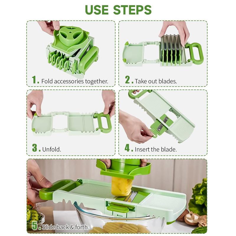Ta krajalnica mandolina zastępuje wiele narzędzi kuchennych jednym kompaktowym, składanym urządzeniem. Ostre ostrza ze stali nierdzewnej, trwała konstrukcja i prosta obsługa sprawiają, że jest to idealne rozwiązanie dla domowych kucharzy, którzy chcą szybko, konsekwentnie i bezpiecznie kroić każdego dnia. Łatwa w czyszczeniu, łatwa w przechowywaniu i zbudowana z myślą o długotrwałym użytkowaniu, jest niezawodnym dodatkiem do każdej kuchni.