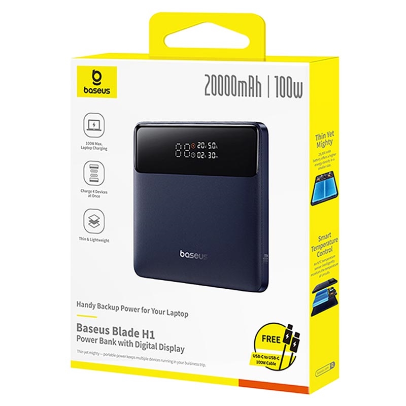 Power Bank Baseus Blade H1 to rozwiązanie nowej generacji łączące wyjątkową moc z ultracienką konstrukcją. Przy grubości zaledwie 17,8 mm i wadze 445 g, zapewnia niezrównaną przenośność bez uszczerbku dla wydajności. Dzięki całkowitej pojemności 20000 mAh i mocy wyjściowej do 100 W, jest w stanie jednocześnie ładować laptopy, tablety i smartfony - idealny towarzysz podróży, pracy lub codziennego użytku.