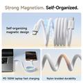 - Magnetyczna konstrukcja samoorganizująca: Utrzymuje kabel starannie zwinięty, aby zapobiec splątaniu i bałaganowi.