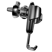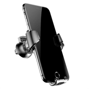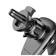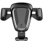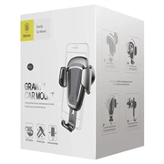 Grawitacyjny uchwyt na telefon Baseus, montowany na kratce wentylacyjnej samochodu. Zakres regulacji uchwytu wynosi 360 stopni. Przeznaczony do telefonów o szerokości od 63 do 88 cm. Automatyczne zaciski boczne uchwytu samoczynnie dopasowują się do szerokości telefonu. Wycięta szyna umożliwia podłączenie ładowarki.
