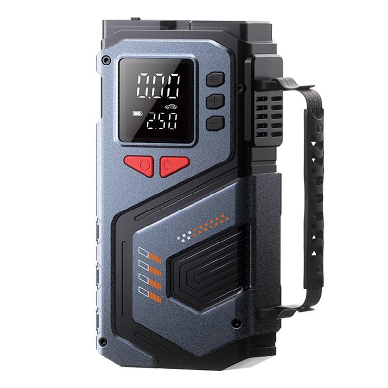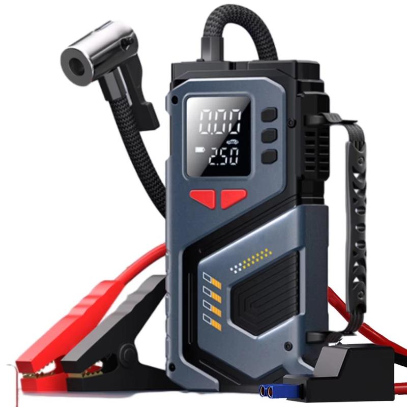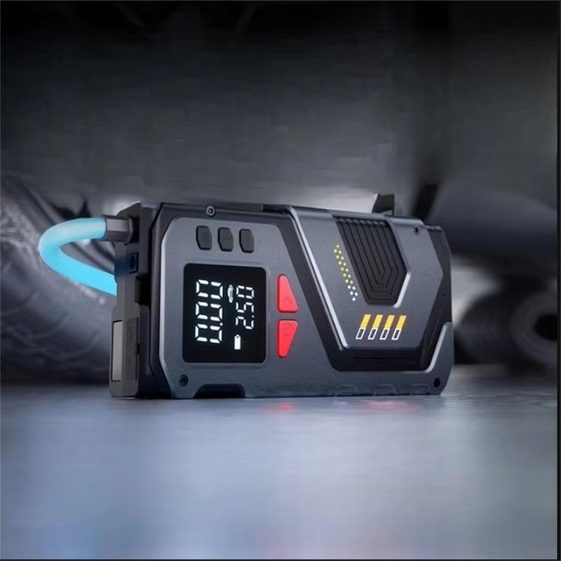 Wielofunkcyjne urządzenie samochodowe H06 łączy w sobie bezprzewodową pompkę powietrza, awaryjny rozrusznik i latarkę LED, zapewniając kompletne rozwiązanie drogowe w jednym kompaktowym i przenośnym urządzeniu. Idealny do samochodów, pojazdów elektrycznych, rowerów i w sytuacjach awaryjnych na zewnątrz.