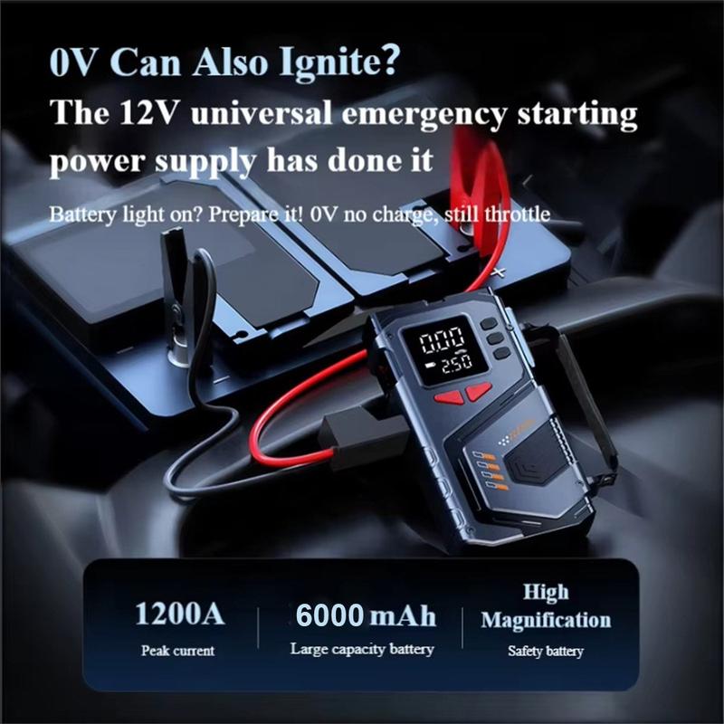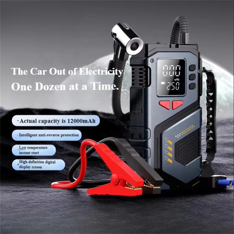 H06 Bezprzewodowa samochodowa pompa powietrza z awaryjnym rozrusznikiem, latarką, wyświetlaczem cyfrowym i funkcją SOS - 6000mAh/120W