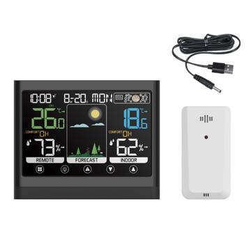 Bezprzewodowa stacja pogodowa z kolorowym ekranem dotykowym, termometrem, higrometrem i budzikiem