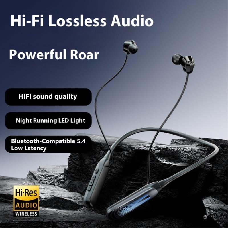 Słuchawki douszne i58 Bluetooth 5.4 z pałąkiem na szyję - bezprzewodowe sportowe słuchawki douszne z wyświetlaczem cyfrowym o żywotności baterii 80 godzin