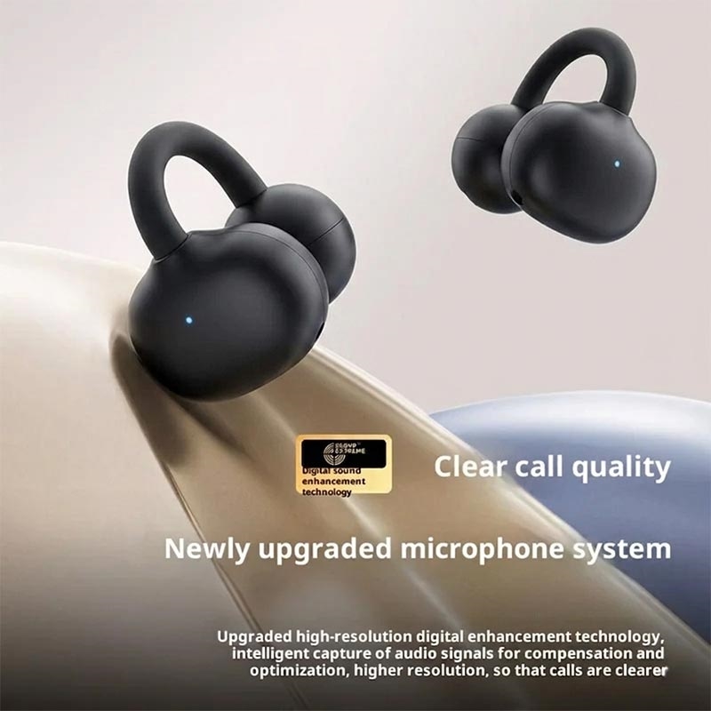 - Bezprzewodowe słuchawki douszne typu clip-on z otwartym uchem