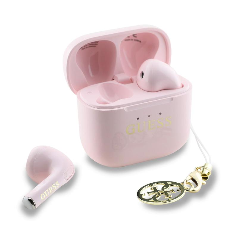 Bezprzewodowe słuchawki Guess Charm z błyszczącym efektem i klasycznym nadrukiem logo